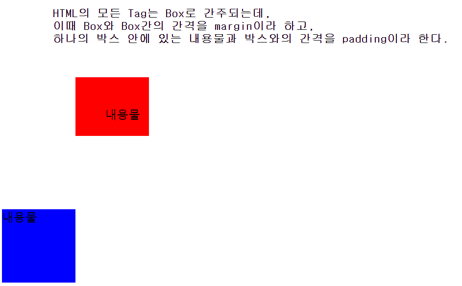 이때 Box와 Box간의 간격을 margin이라 하고,